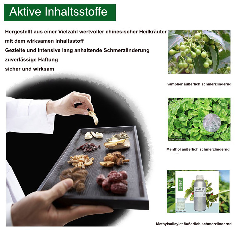 Das Schmerzpflaster enthält eine Vielzahl wertvoller chinesischer Kräuter