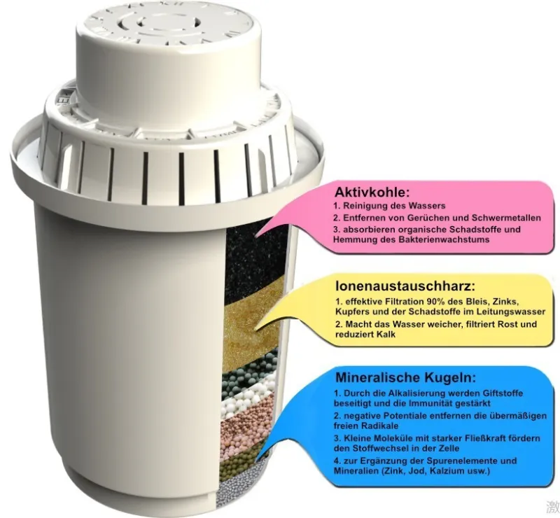 • Mineralische Kugeln im Filter (erzeugen alkalisches Wasser mit pH 8,5-9,4)