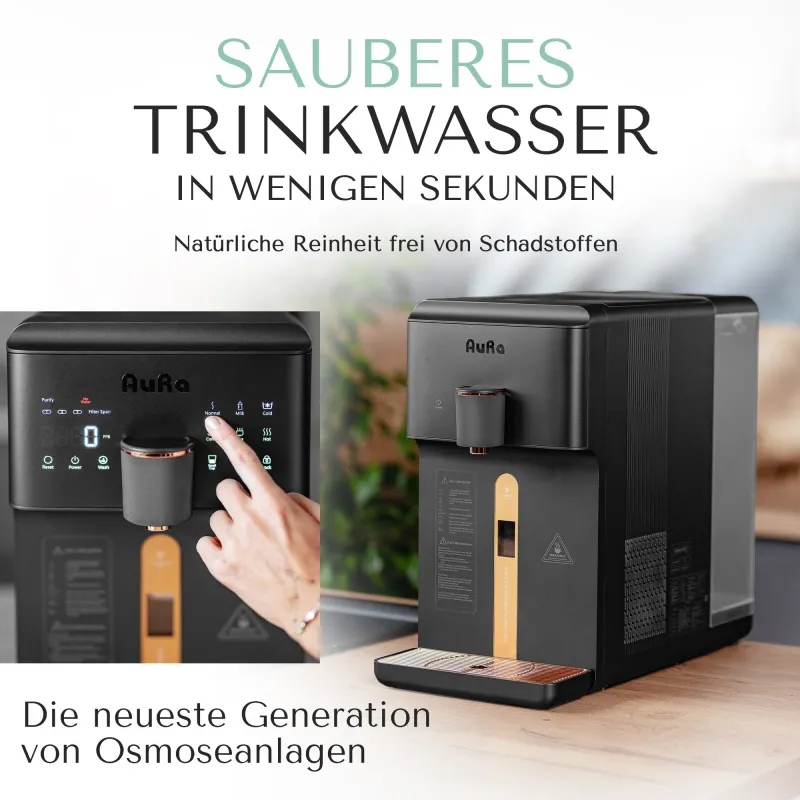 AURA Auftisch-Umkehrosmoseanlage mit Wasserstoff-Ionisator und Heißwasserfunktion